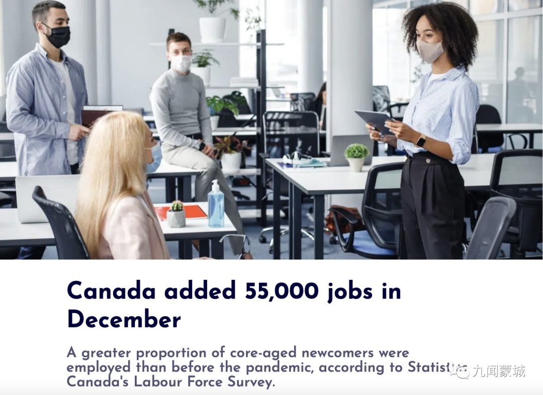 加拿大2021年12月份新增5.5万个就业岗位