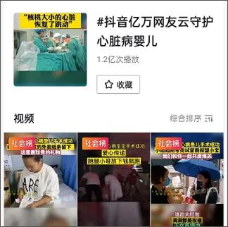 抖音上有个热搜,叫“抖音亿万网友云守护心脏病婴儿”,昨天的播放量超过1.2亿次,截止到目前,整个事件的播放量远远超过这个数。