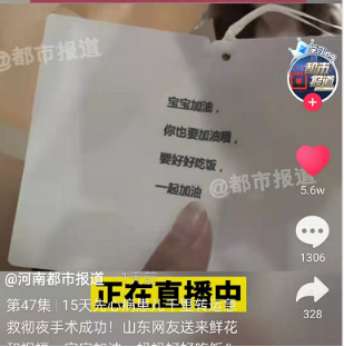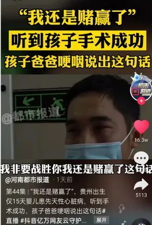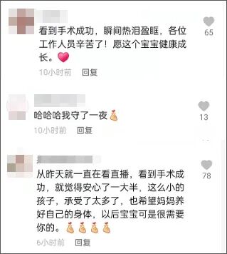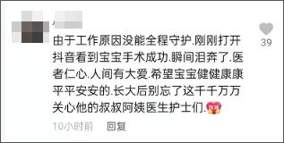 还有的网友说:因为工作原因,没能全程守护,但刚刚打开抖音,看到宝宝手术成功瞬间泪奔,希望宝宝健康长大,别忘了关心他的叔叔阿姨们。
