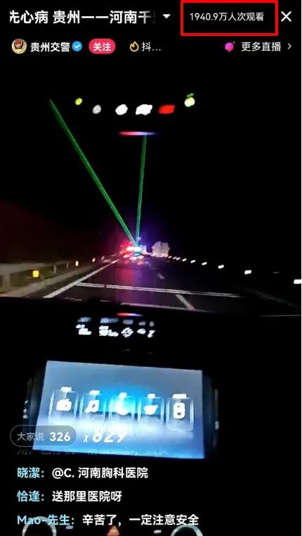 首先是贵州交警,贵州交警主动联系上他们,并且用150码的速度追赶上救护车。