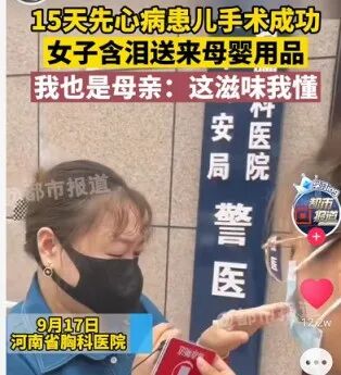 还有一个妈妈提着坐月子女性需要的卫生巾和母婴产品就过来了,她哭着说:我也是母亲,这滋味我懂…..