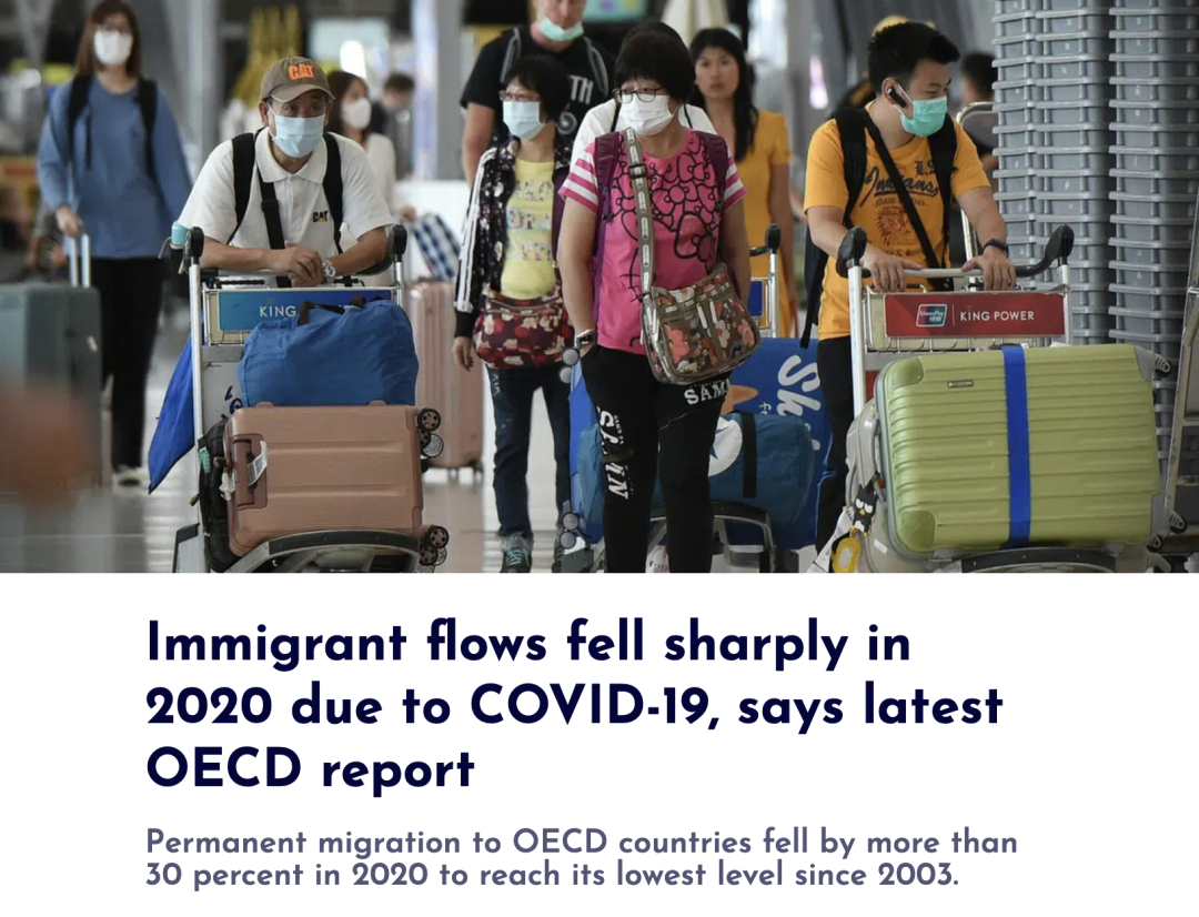 在疫情期间,大多数经合组织国家缩减了移民服务并且实施了入境限制,这也是新移民数量骤降的原因之一。但同时这些国家也采取了相关临时措施来减轻疫情对于新移民人数的影响,比如延长部分人群在境内合法停留的期限,为国际学生提供网课等等。在疫情逐渐好转后,经合组织的国家承诺将会进一步扩大新移民的数量。