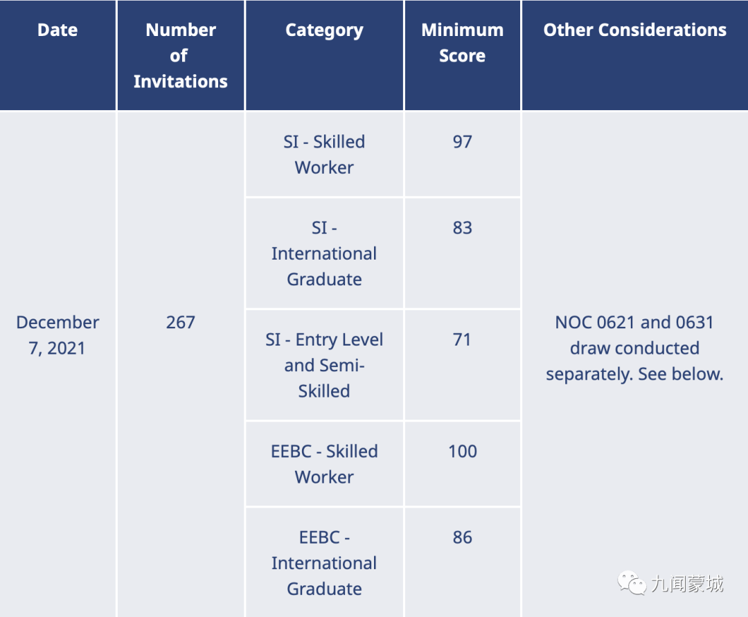 0621批发及零售业经理职位和0631餐饮及食品业经理职位共51人获邀,分数均为103分。本轮分数较上轮不变,邀请人数减少。更多关于BC省移民项目的介绍,请浏览九程移民官网:https://90miles.ca/white-paper-bc-nomination/