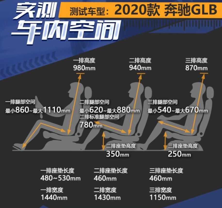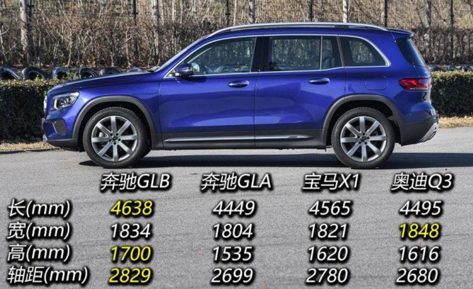 为啥叫小“三居”?我是这样理解的:如果把汽车按照户型来类比,那每一排座椅就可以看作是单独的一个居室,三排座的车自然就是三居了。而GLB的定位是较大尺寸的紧凑型SUV,有五座和七座版。关于7坐可用性的问题咱放到内饰再说,但是九十脉不得不提到一个“加座”的好处,那就是轴距相对加长,优于无此选项的竞争对手,