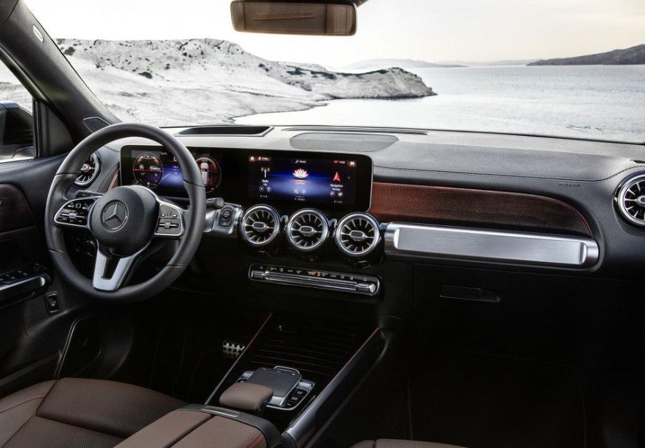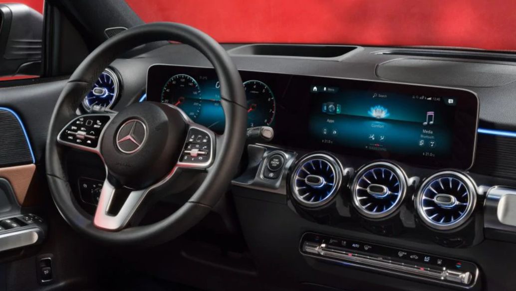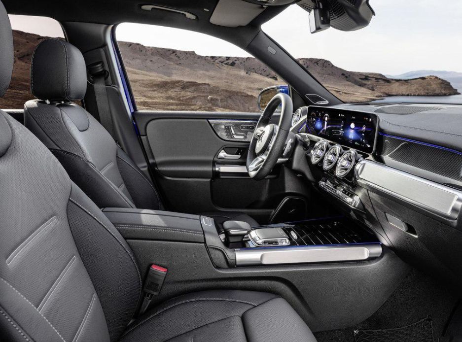 内饰方面,GLB也采用了奔驰家族新的风格,和全新的A级、CLA级属于一个风格,仪表+中控连体式设计、涡轮式的空调出风口造型、全新的Touchpad控制器、金属质感十足且带有双拇指控制功能的方向盘等,让它的内饰感觉比GLC更具科技感和档次感。