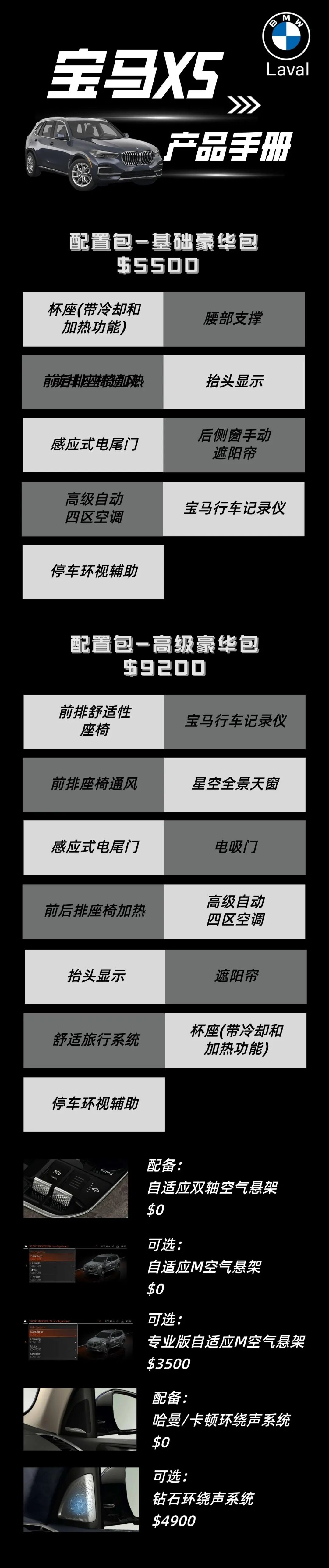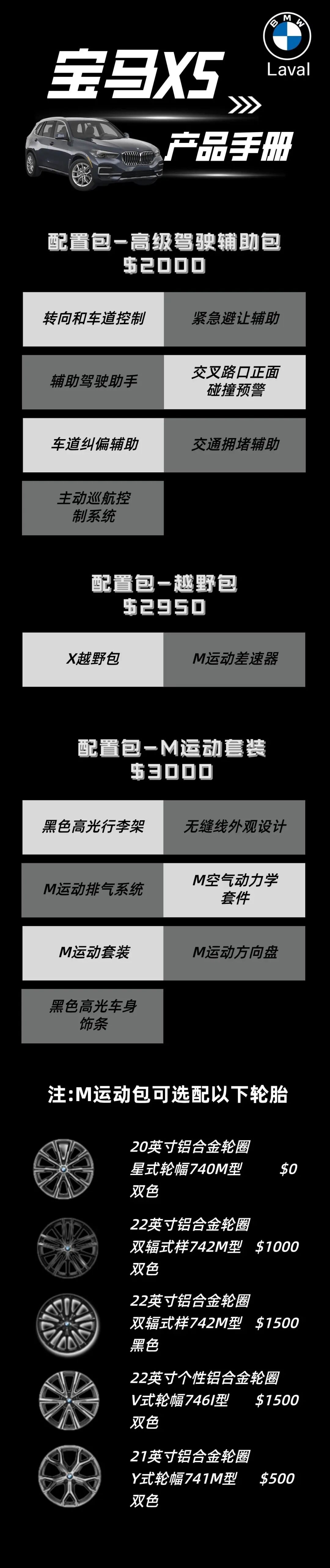 各位看官大家好!姜伟的宝马课堂如期而至!今天为大家带来的是宝马2022款X5加拿大版的中文产品手册,有了这本手册,可以清晰明了的看懂X5的基础配置、可选配选项及各配置包配置等,是一份贴心的指南。在文章的末尾,还为大家带来了【重磅折扣Deal】,回馈给广大读者,千万不要错过!